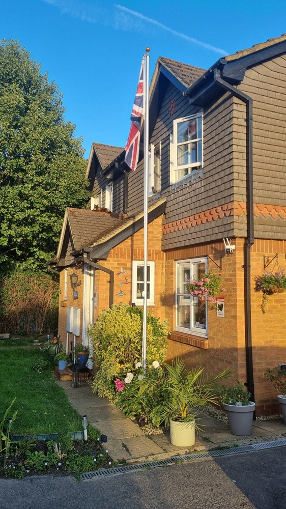 This Residential flag pole is widely used to fly 5ft x 3ft flags and can easily be taken down in high winds.
