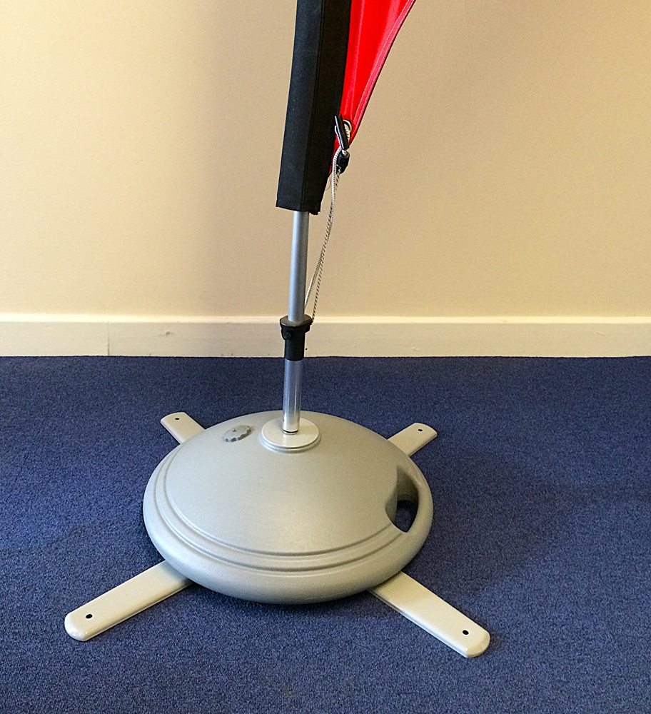 Cross Base: This base is ideal for hard, flat surfaces, indoors or outdoors, such as pavements, trade show floors, or exhibition halls. Enhance stability with a water bag weight for windy conditions.